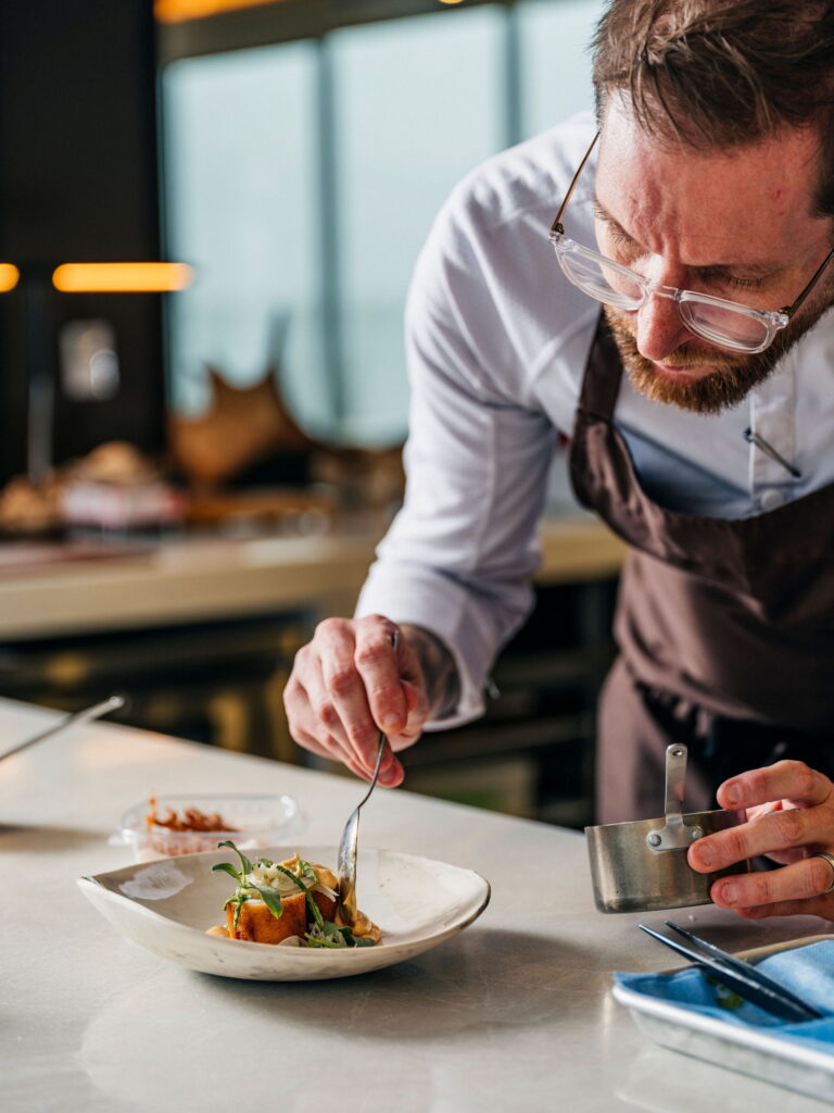 In line with the wolf eel’s natural diet, Campbell paired it with scallops and crab. The fish, while compressed into form, remained supple and responsive to the fork. The flavour was soft, sweet and oceanic. A crab hollandaise, pale orange and smooth as silk, pooled lusciously around.